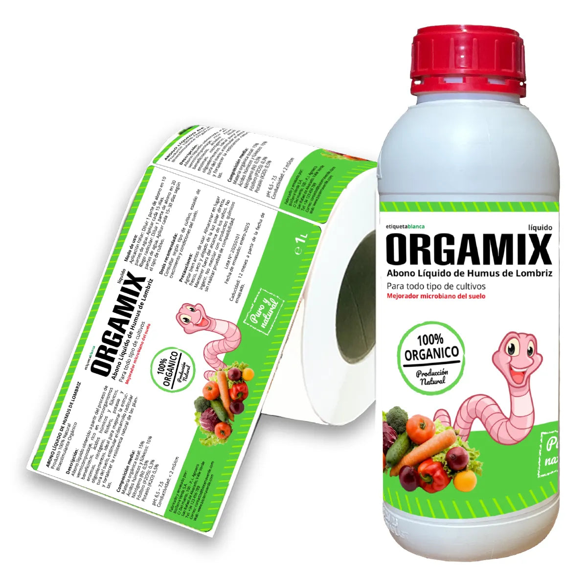 Usos comunes: Etiquetas para envases de fertilizantes líquidos, productos químicos, etc.